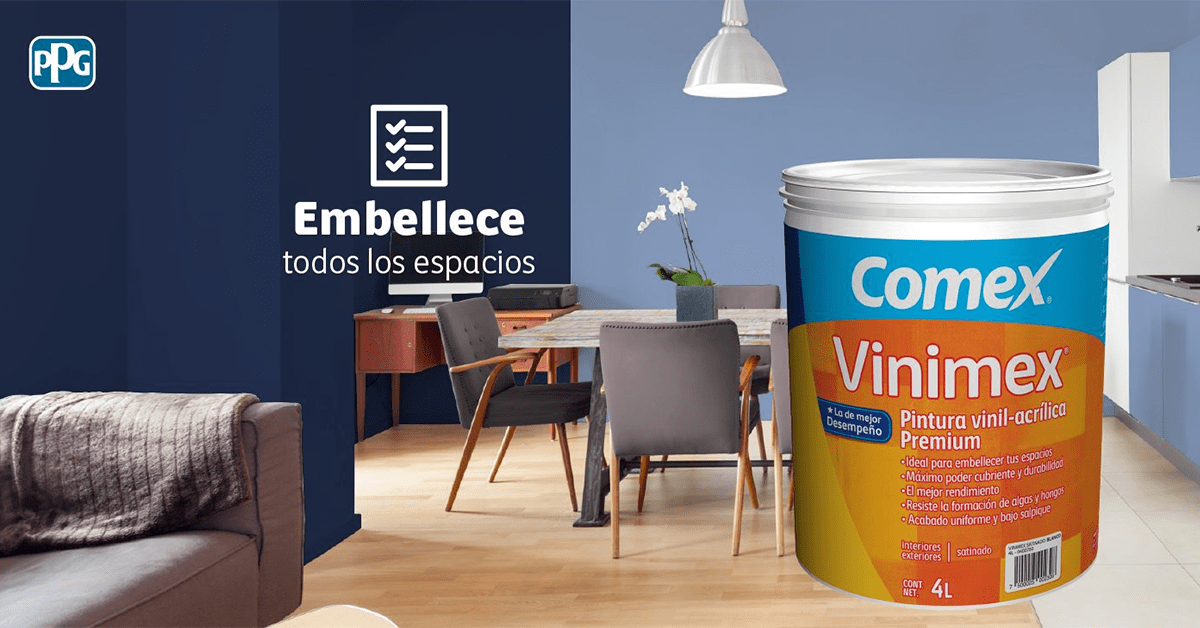 pinturas vinílicas decorativas, las cuales te permiten embellecer y proteger cualquier espacio ya sea al interior o al exterior, dejando un acabado uniforme que hará lucir todos tus muros.